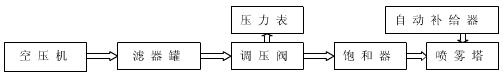 空氣壓縮機(jī)產(chǎn)生壓力空氣(正壓)經(jīng)過濾罐過濾通過調(diào)壓閥給到飽和器、飽和器的出氣口接到噴嘴產(chǎn)生濕度極高而溫度時(shí)宜的氣溫源,并同時(shí)把噴塔中的鹽水吸上來達(dá)到噴霧效果。鹽霧試驗(yàn)箱空氣壓縮機(jī)目的是使水成為霧狀,飽和器目的是鹽水不結(jié)晶。